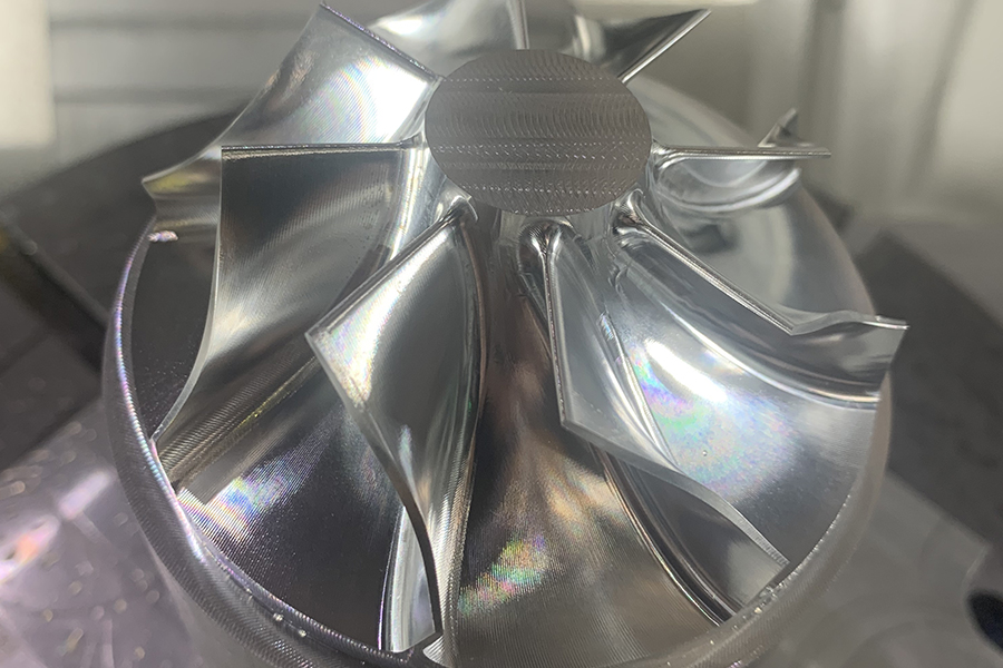 The five-axis machining center is machining the impeller